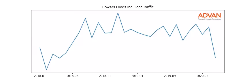 Flowers Foods Inc. along with another 360 companies belongs to the Advan Consumer Staples. The following chart shows the foot traffic index on this sector.