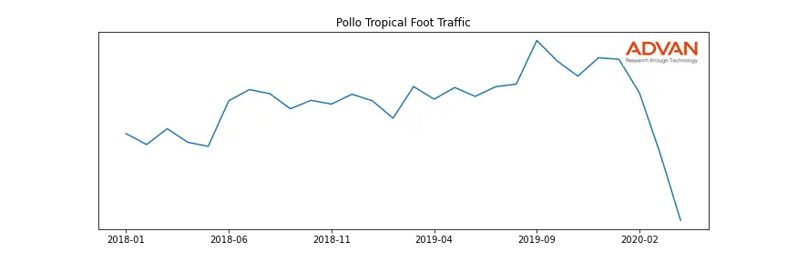 Pollo Tropical along with another 1766 companies belongs to the Advan Consumer Discretionary. The following chart shows the foot traffic index on this sector.