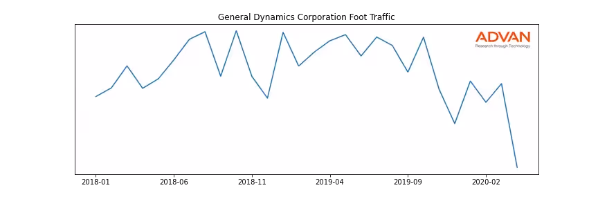 General Dynamics Corporation along with another 301 companies belongs to the Advan Industrials. The following chart shows the foot traffic index on this sector.