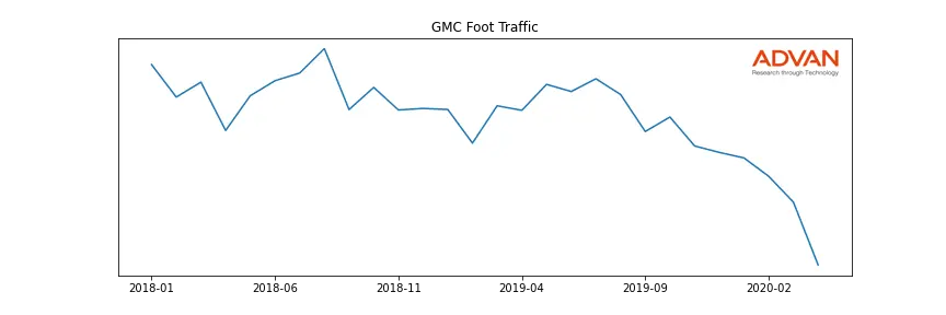 GMC along with another 1766 companies belongs to the Advan Consumer Discretionary. The following chart shows the foot traffic index on this sector.
