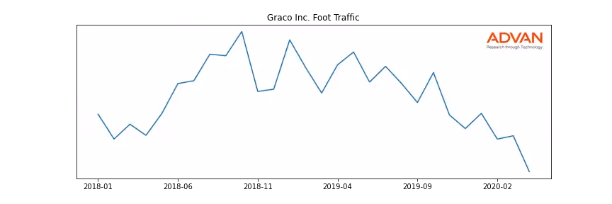 Graco Inc. along with another 301 companies belongs to the Advan Industrials. The following chart shows the foot traffic index on this sector.