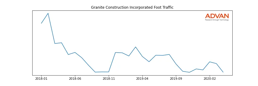 Granite Construction Incorporated along with another 301 companies belongs to the Advan Industrials. The following chart shows the foot traffic index on this sector.