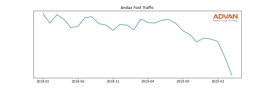 Andaz along with another 1766 companies belongs to the Advan Consumer Discretionary. The following chart shows the foot traffic index on this sector.