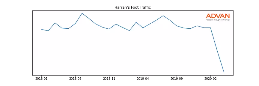 Harrah's along with another 1766 companies belongs to the Advan Consumer Discretionary. The following chart shows the foot traffic index on this sector.