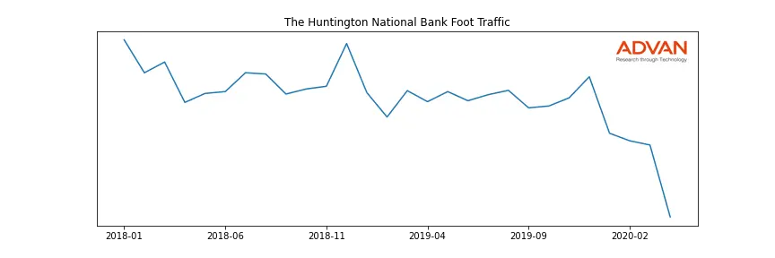 The Huntington National Bank along with another 150 companies belongs to the Advan Financials. The following chart shows the foot traffic index on this sector.