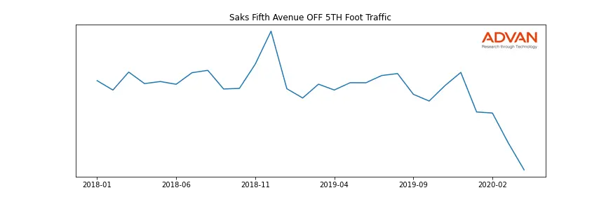 Saks Fifth Avenue OFF 5TH along with another 1766 companies belongs to the Advan Consumer Discretionary. The following chart shows the foot traffic index on this sector.