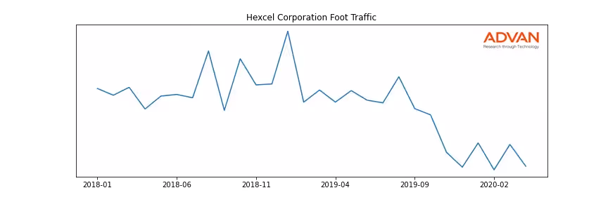 Hexcel Corporation along with another 301 companies belongs to the Advan Industrials. The following chart shows the foot traffic index on this sector.