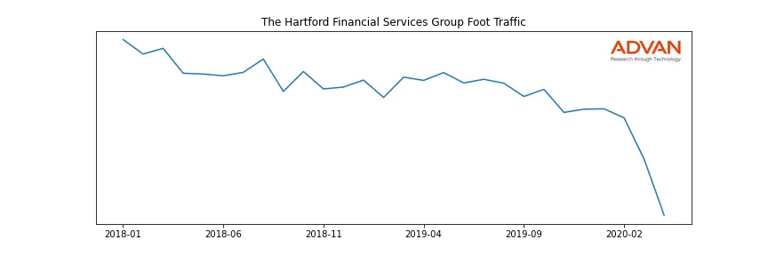 The Hartford Financial Services Group along with another 150 companies belongs to the Advan Financials. The following chart shows the foot traffic index on this sector.