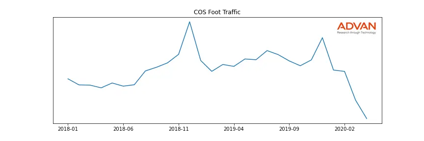 COS along with another 1766 companies belongs to the Advan Consumer Discretionary. The following chart shows the foot traffic index on this sector.