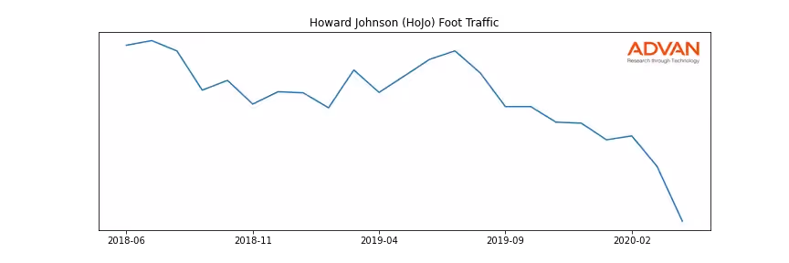 Howard Johnson (HoJo) along with another 1766 companies belongs to the Advan Consumer Discretionary. The following chart shows the foot traffic index on this sector.