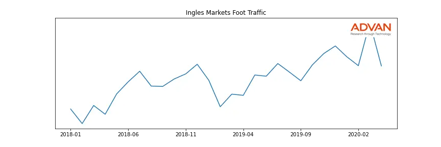 Ingles Markets along with another 360 companies belongs to the Advan Consumer Staples. The following chart shows the foot traffic index on this sector.