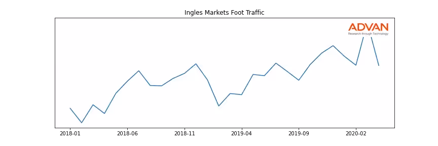 Ingles Markets along with another 360 companies belongs to the Advan Consumer Staples. The following chart shows the foot traffic index on this sector.
