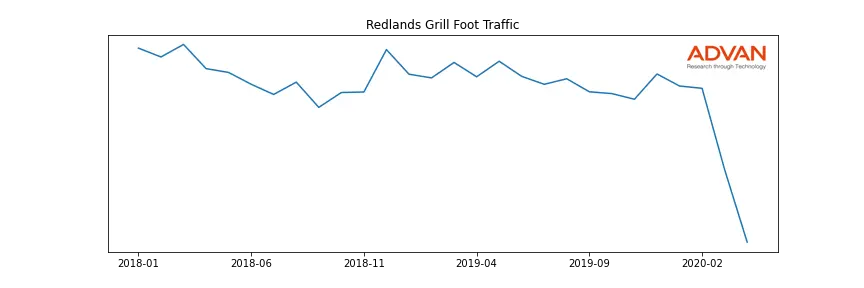 Redlands Grill along with another 1766 companies belongs to the Advan Consumer Discretionary. The following chart shows the foot traffic index on this sector.
