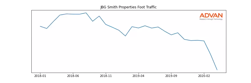 JBG Smith Properties along with another 180 companies belongs to the Advan Real Estate. The following chart shows the foot traffic index on this sector.