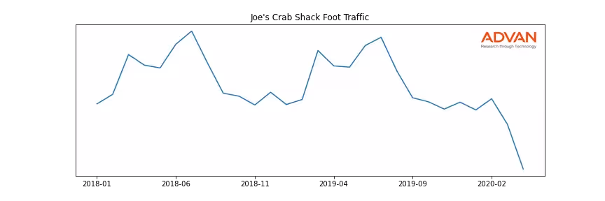 Joe's Crab Shack along with another 1766 companies belongs to the Advan Consumer Discretionary. The following chart shows the foot traffic index on this sector.