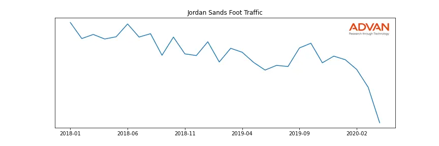 Jordan Sands along with another 166 companies belongs to the Advan Materials. The following chart shows the foot traffic index on this sector.