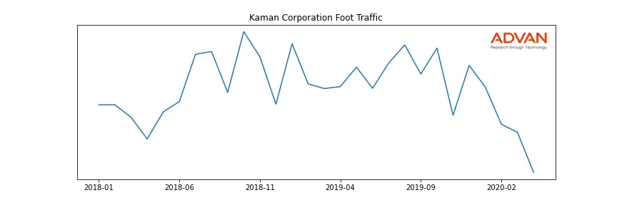 Kaman Corporation along with another 301 companies belongs to the Advan Industrials. The following chart shows the foot traffic index on this sector.