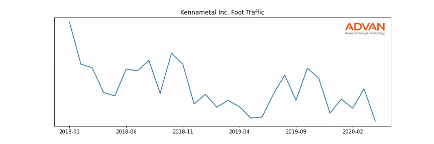Kennametal Inc. along with another 301 companies belongs to the Advan Industrials. The following chart shows the foot traffic index on this sector.