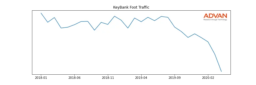 KeyBank along with another 150 companies belongs to the Advan Financials. The following chart shows the foot traffic index on this sector.