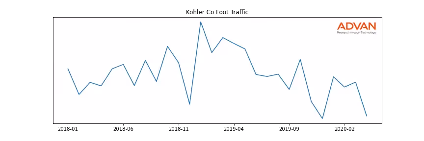 Kohler Co along with another 7 companies belongs to the Advan Consumer Durables. The following chart shows the foot traffic index on this sector.