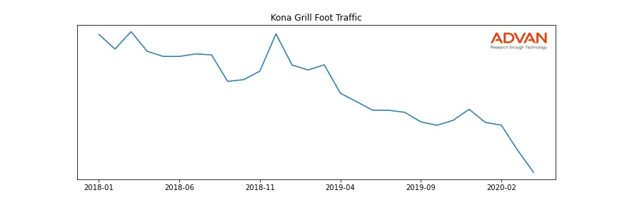 Kona Grill along with another 1766 companies belongs to the Advan Consumer Discretionary. The following chart shows the foot traffic index on this sector.