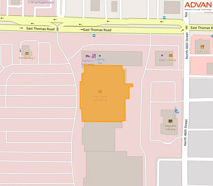 The top three locations of Fry's Food & Drug Stores that contribute the most traffic for the brand have approximately 7 of the firm’s overall footfall. Out of these, the store located at 4505 East Thomas Road, Phoenix, AZ 85018 is the top performer in terms of people visited.