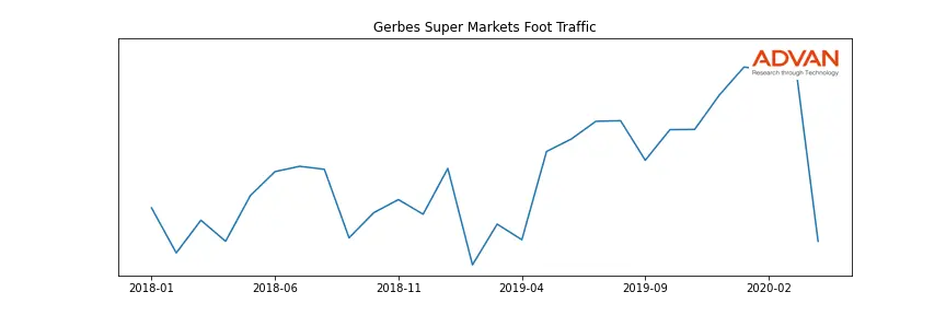 Gerbes Super Markets along with another 360 companies belongs to the Advan Consumer Staples. The following chart shows the foot traffic index on this sector.
