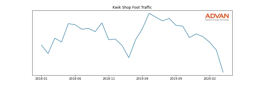 Kwik Shop along with another 360 companies belongs to the Advan Consumer Staples. The following chart shows the foot traffic index on this sector.