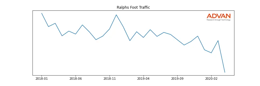 Ralphs along with another 360 companies belongs to the Advan Consumer Staples. The following chart shows the foot traffic index on this sector.