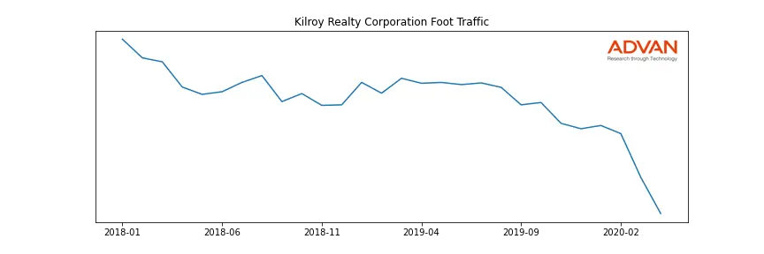 Kilroy Realty Corporation along with another 180 companies belongs to the Advan Real Estate. The following chart shows the foot traffic index on this sector.