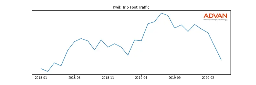 Kwik Trip along with another 360 companies belongs to the Advan Consumer Staples. The following chart shows the foot traffic index on this sector.