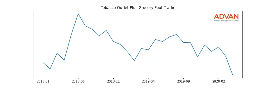Tobacco Outlet Plus Grocery along with another 360 companies belongs to the Advan Consumer Staples. The following chart shows the foot traffic index on this sector.