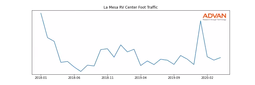 La Mesa RV Center along with another 301 companies belongs to the Advan Industrials. The following chart shows the foot traffic index on this sector.