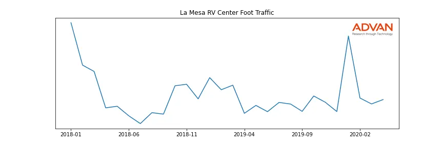 La Mesa RV Center along with another 301 companies belongs to the Advan Industrials. The following chart shows the foot traffic index on this sector.