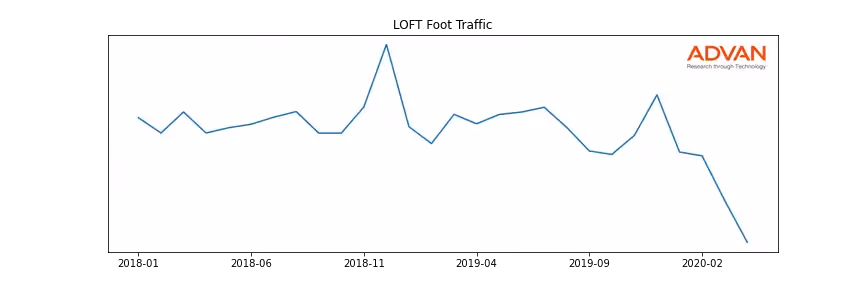 LOFT along with another 1766 companies belongs to the Advan Consumer Discretionary. The following chart shows the foot traffic index on this sector.