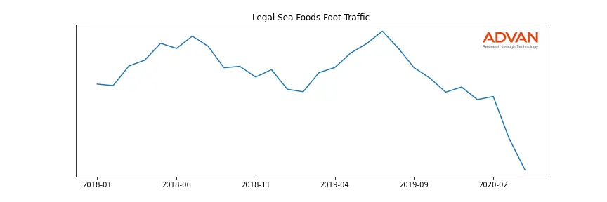 Legal Sea Foods along with another 1766 companies belongs to the Advan Consumer Discretionary. The following chart shows the foot traffic index on this sector.