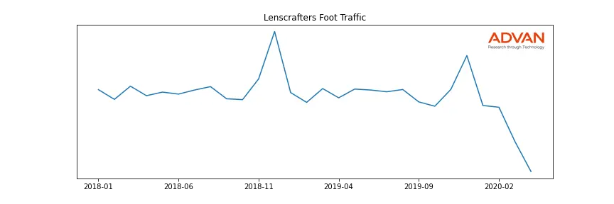 Lenscrafters along with another 1766 companies belongs to the Advan Consumer Discretionary. The following chart shows the foot traffic index on this sector.