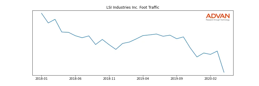 LSI Industries Inc. along with another 301 companies belongs to the Advan Industrials. The following chart shows the foot traffic index on this sector.