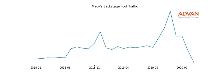 Macy's Backstage along with another 1766 companies belongs to the Advan Consumer Discretionary. The following chart shows the foot traffic index on this sector.