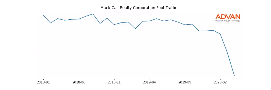 Mack-Cali Realty Corporation along with another 180 companies belongs to the Advan Real Estate. The following chart shows the foot traffic index on this sector.
