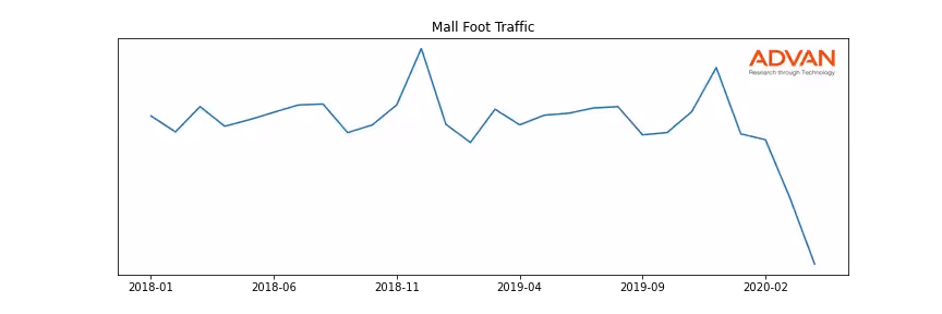 Mall along with another 180 companies belongs to the Advan Real Estate. The following chart shows the foot traffic index on this sector.