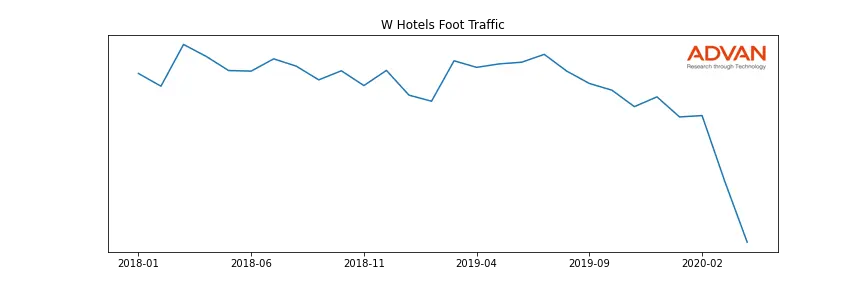 W Hotels along with another 1766 companies belongs to the Advan Consumer Discretionary. The following chart shows the foot traffic index on this sector.