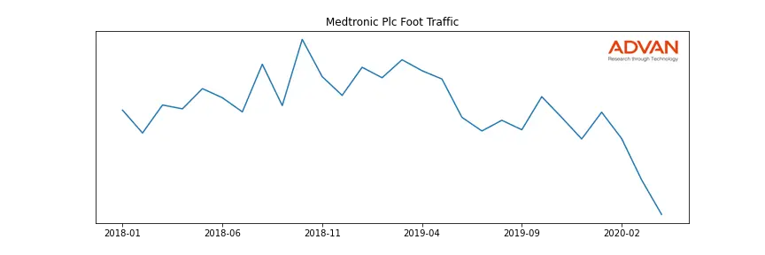 Medtronic Plc along with another 144 companies belongs to the Advan Health Care. The following chart shows the foot traffic index on this sector.