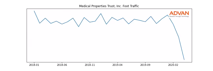 Medical Properties Trust, Inc. along with another 180 companies belongs to the Advan Real Estate. The following chart shows the foot traffic index on this sector.