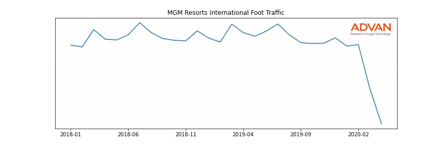 MGM Resorts International along with another 1766 companies belongs to the Advan Consumer Discretionary. The following chart shows the foot traffic index on this sector.
