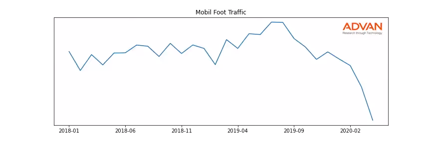 Mobil along with another 109 companies belongs to the Advan Energy. The following chart shows the foot traffic index on this sector.