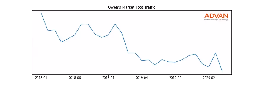 Owen's Market along with another 360 companies belongs to the Advan Consumer Staples. The following chart shows the foot traffic index on this sector.