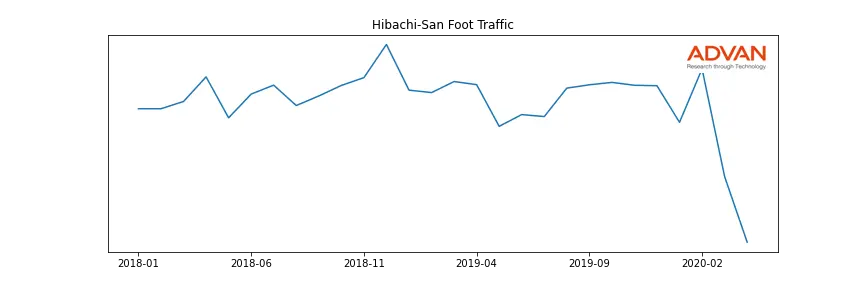 Hibachi-San along with another 1766 companies belongs to the Advan Consumer Discretionary. The following chart shows the foot traffic index on this sector.