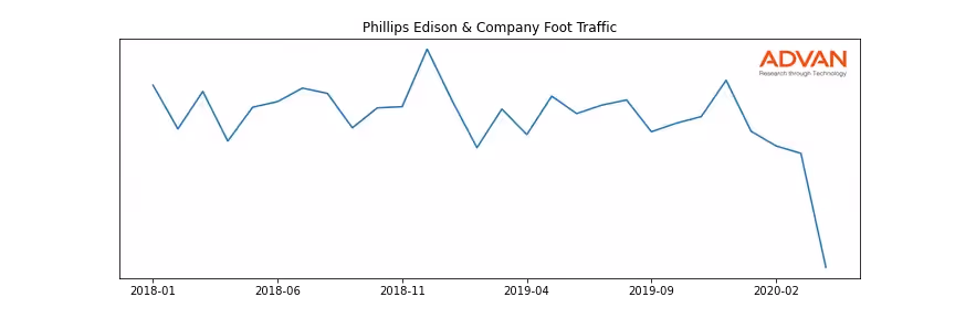 Phillips Edison & Company along with another 180 companies belongs to the Advan Real Estate. The following chart shows the foot traffic index on this sector.