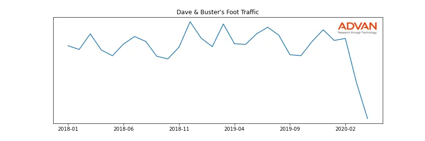 Dave & Buster's along with another 1766 companies belongs to the Advan Consumer Discretionary. The following chart shows the foot traffic index on this sector.